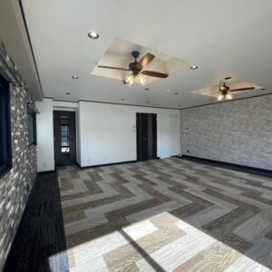 一部上げられた天井とダウンライト・スポットライトでオシャレな空間に仕上がっています。